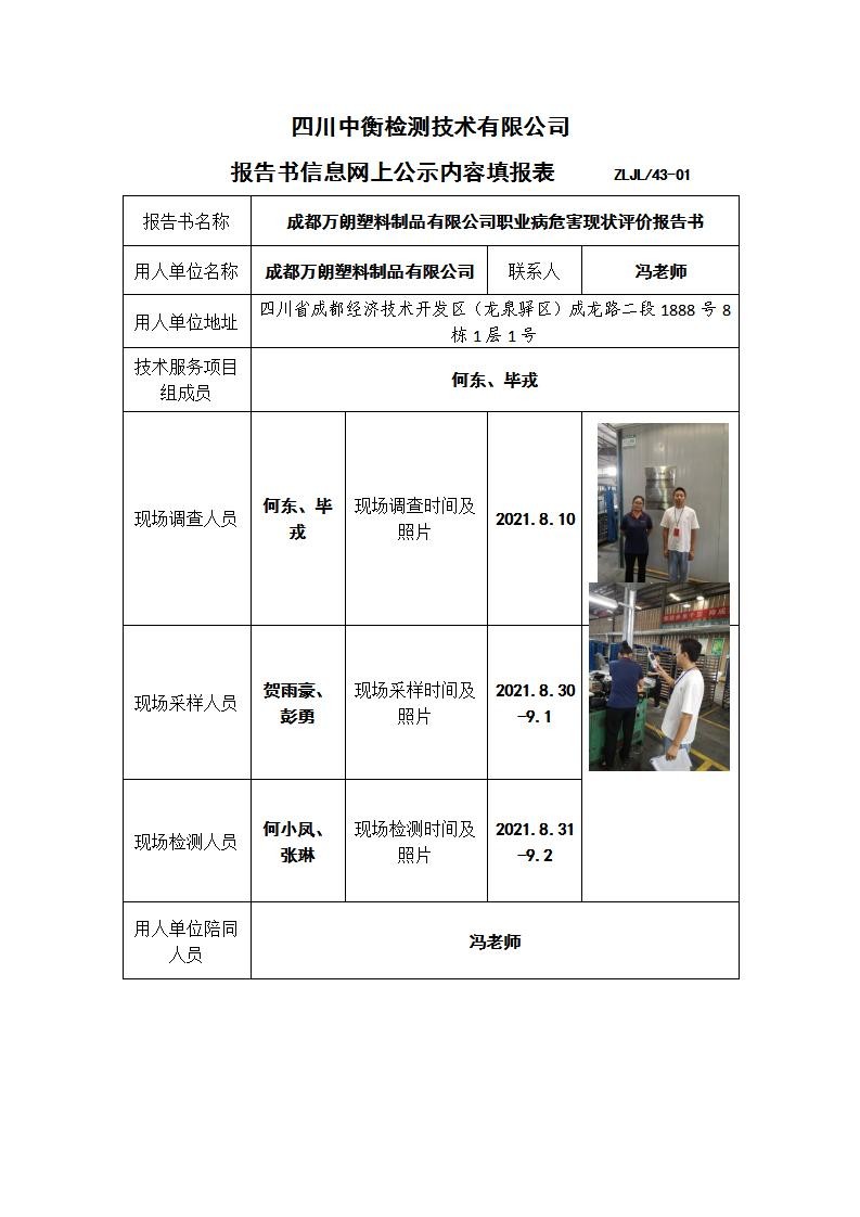 成都萬朗塑料制品有限公司職業(yè)病危害現(xiàn)狀評價報告書