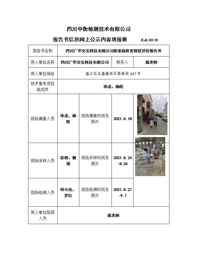 四川廣華交安科技有限公司職業(yè)病危害現(xiàn)狀評價(jià)報(bào)告書