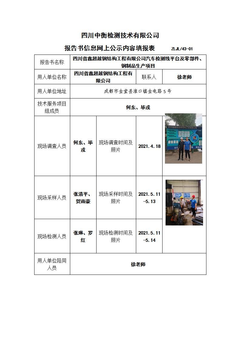 四川省鑫超越鋼結(jié)構(gòu)工程有限公司汽車檢測線平臺(tái)及零部件、鋼制品生產(chǎn)項(xiàng)目