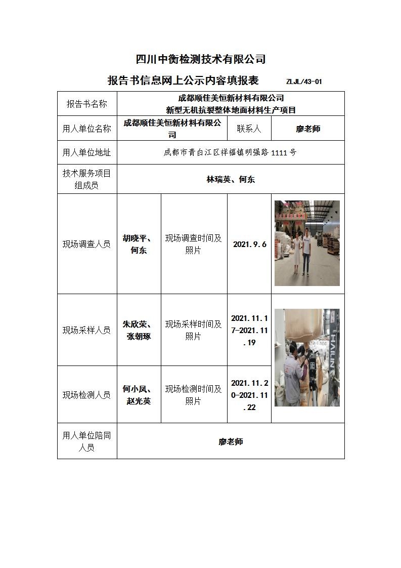 成都順佳美恒新材料有限公司 新型無機抗裂整體地面材料生產項目