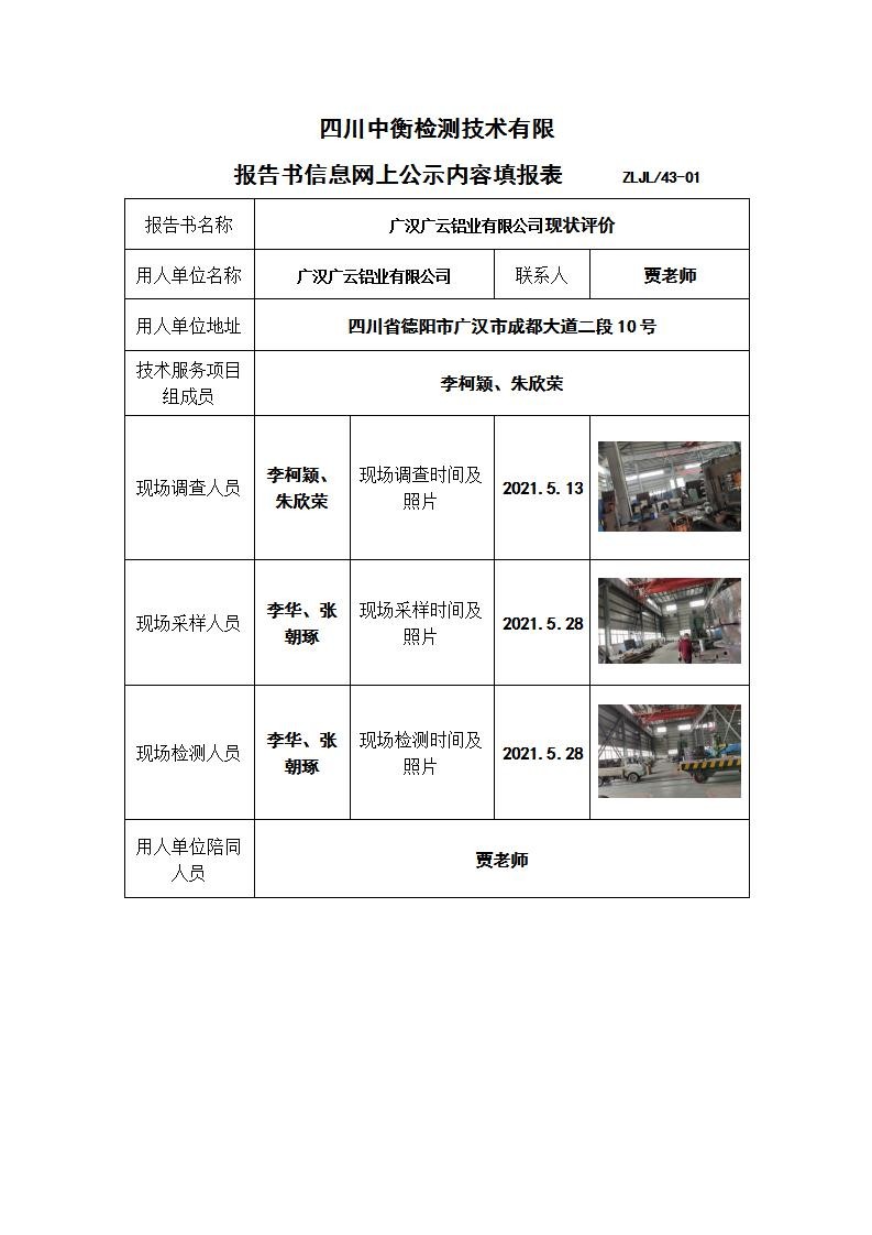 廣漢廣云鋁業有限公司現狀評價