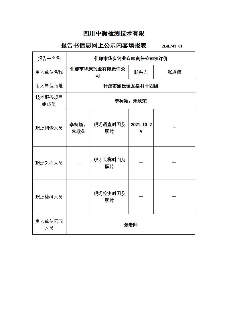 什邡市華慶鈣業(yè)有限責(zé)任公司預(yù)評價