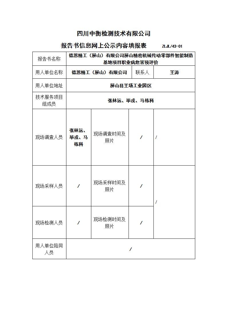 德恩精工(屏山)有限公司屏山精密機械傳動零部件智能制造基地項目職業(yè)病危害預評價
