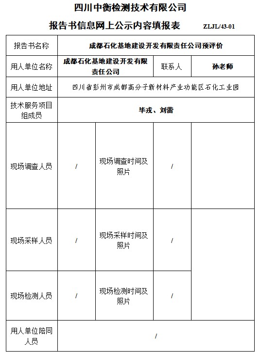 成都石化基地建設開發有限責任公司預評價