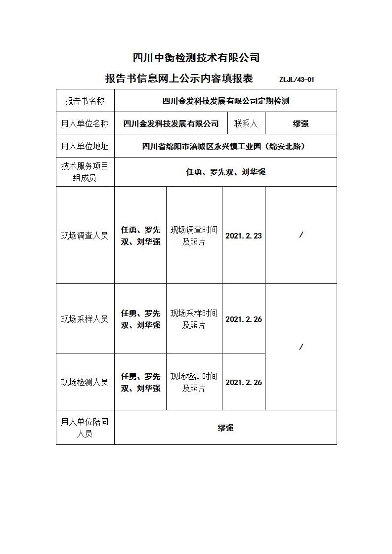 四川金發(fā)科技發(fā)展有限公司職業(yè)病危害定期檢測(cè)