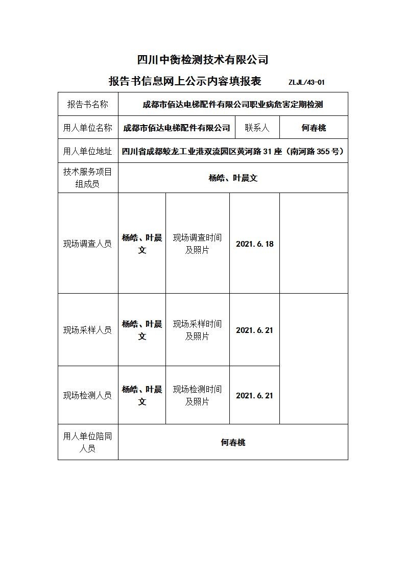 成都市佰達電梯配件有限公司職業(yè)病危害定期檢測