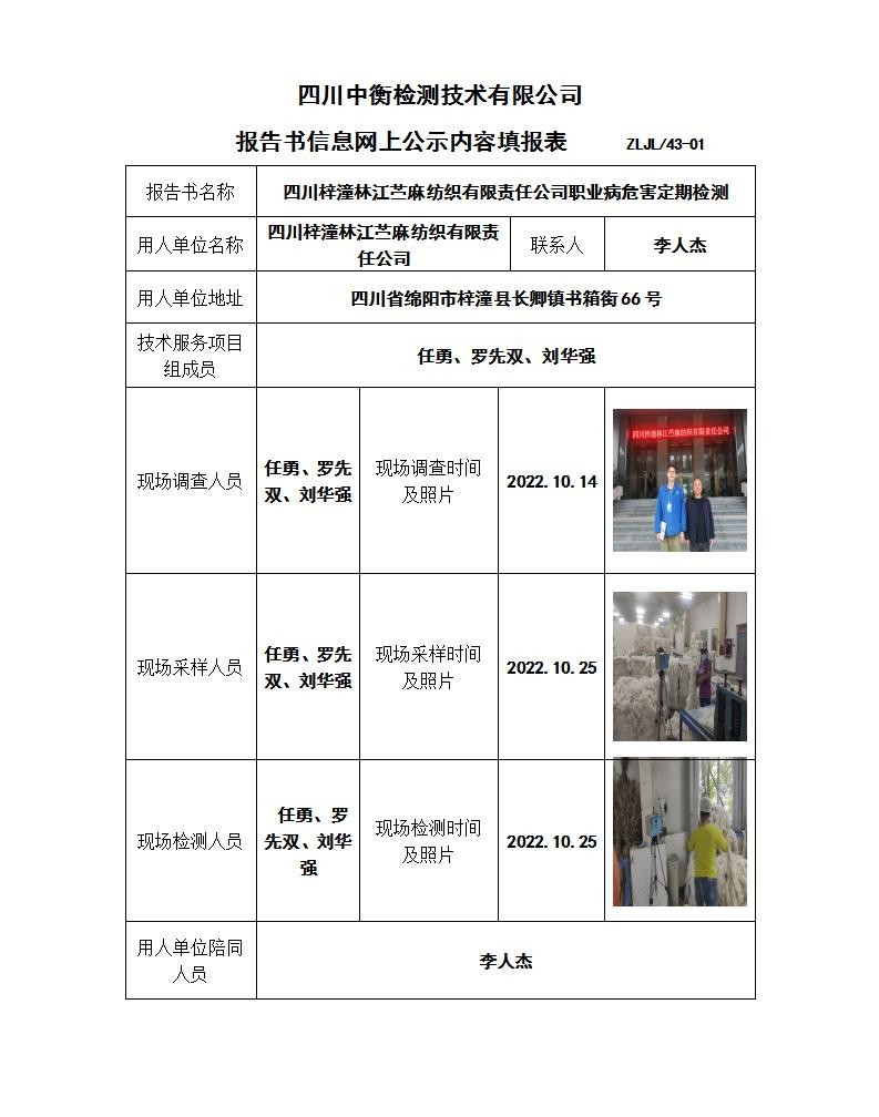四川梓潼林江苧麻紡織有限責任公司職業(yè)病危害定期檢測