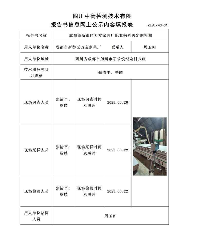 成都市新都區(qū)萬友家具廠職業(yè)病危害定期檢測