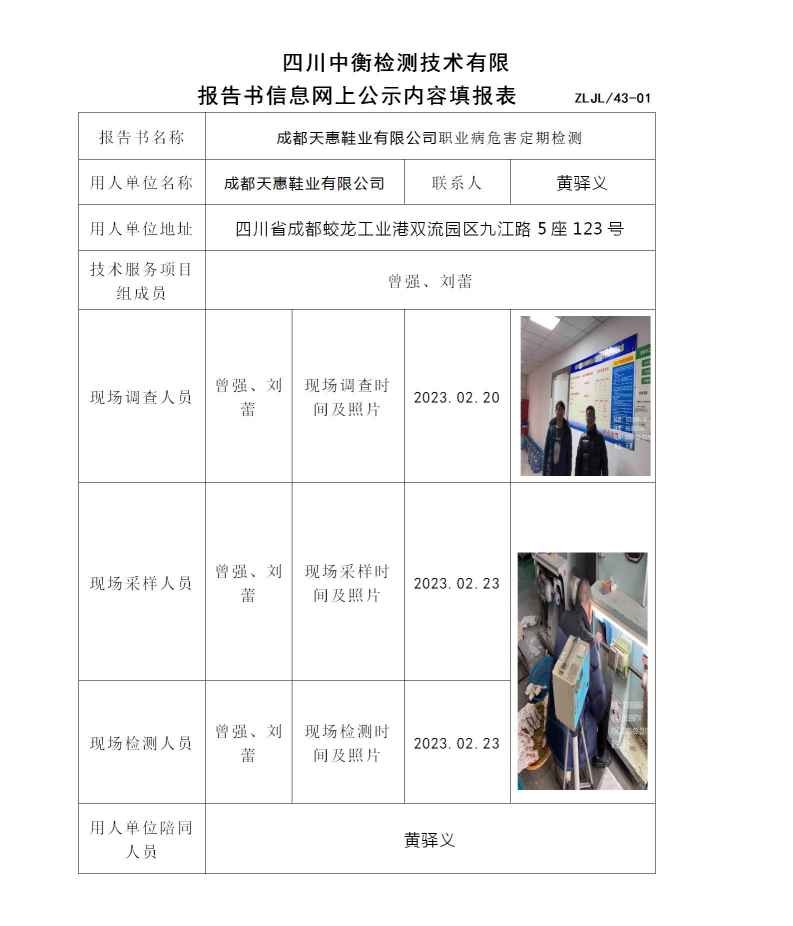 成都天惠鞋業(yè)有限公司職業(yè)病危害定期檢測