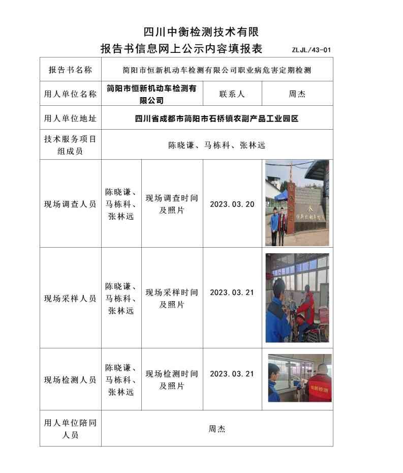 簡陽市恒新機動車檢測有限公司職業病危害定期檢測