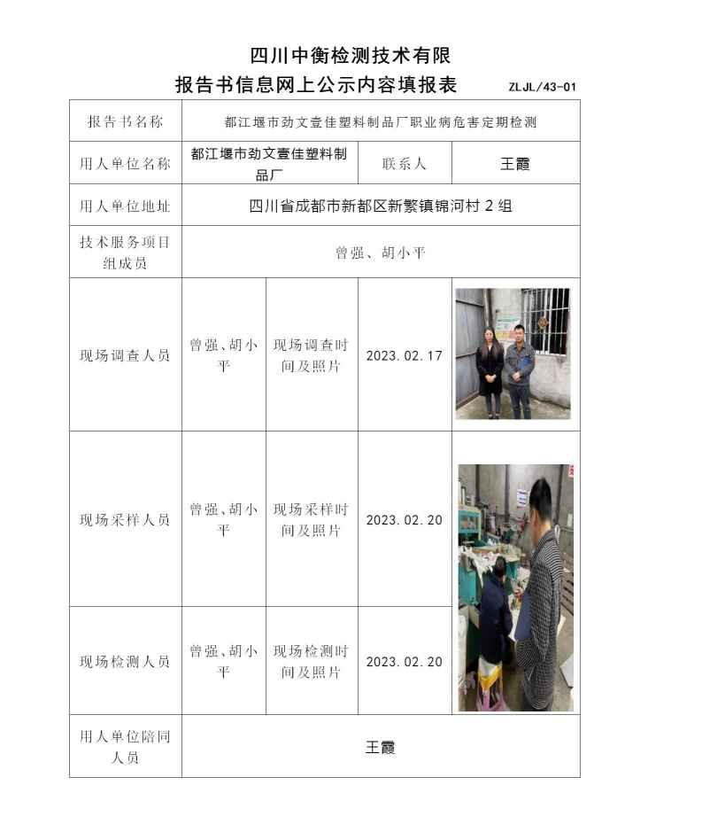 都江堰市勁文壹佳塑料制品廠職業(yè)病危害定期檢測