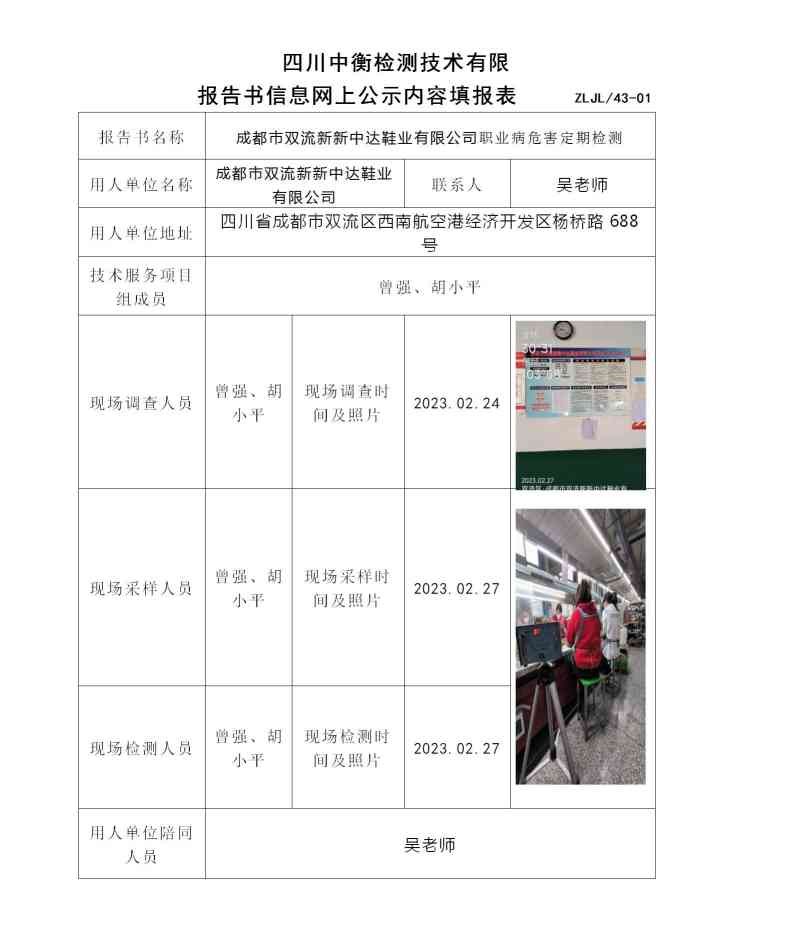 成都市雙流新新中達(dá)鞋業(yè)有限公司職業(yè)病危害定期檢測