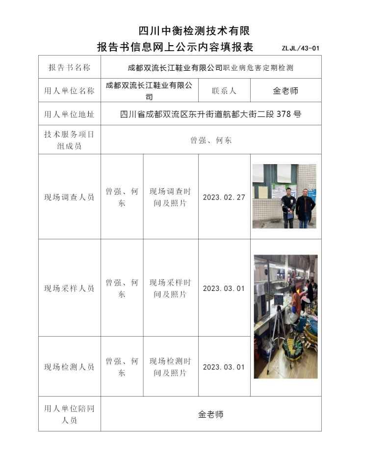 成都雙流長(zhǎng)江鞋業(yè)有限公司職業(yè)病危害定期檢測(cè)