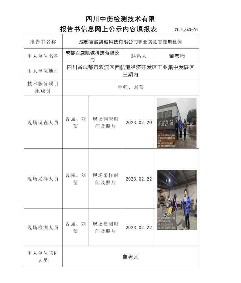 成都百威凱誠科技有限公司職業(yè)病危害定期檢測