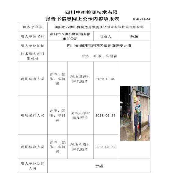 德陽市萬騰機械制造有限責任公司職業(yè)病危害定期檢測