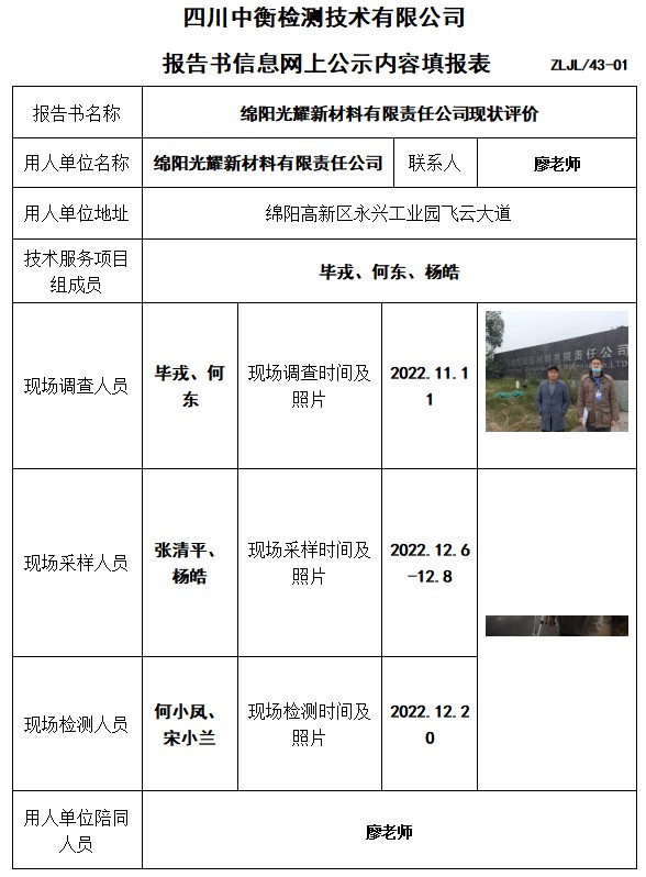 綿陽光耀新材料有限責(zé)任公司現(xiàn)狀評(píng)價(jià)