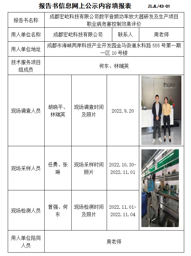 成都宏屹科技有限公司數(shù)字音頻功率放大器研發(fā)及生產(chǎn)項(xiàng)目控制效果評價(jià)