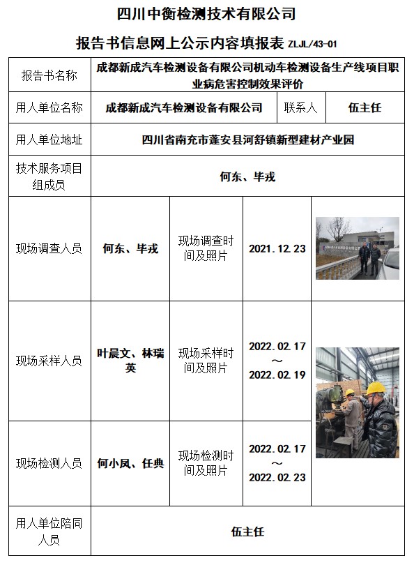 成都新成汽車檢測設(shè)備有限公司機動車檢測設(shè)備生產(chǎn)線項目控制效果評價