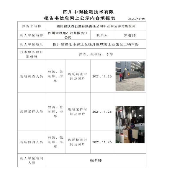 四川省玖鼎石油有限責任公司定期檢測