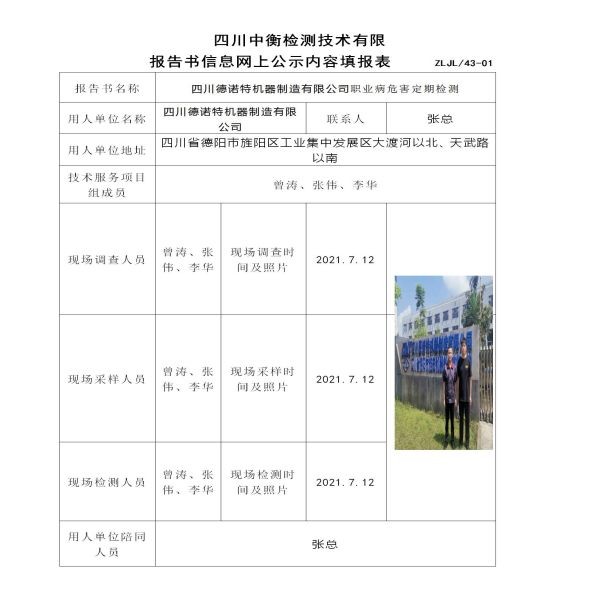 四川德諾特機(jī)器制造有限公司定期檢測(cè)
