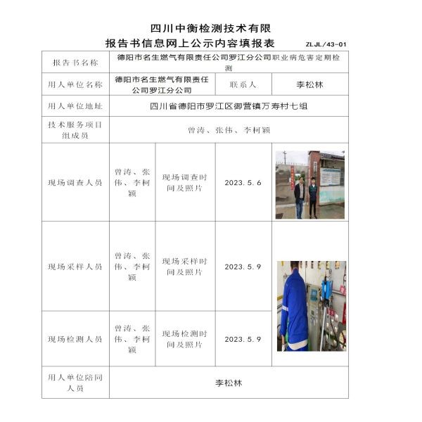 德陽市名生燃氣有限責任公司羅江分公司定期檢測
