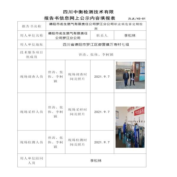 德陽市名生燃?xì)庥邢挢?zé)任公司羅江分公司定期檢測(cè)
