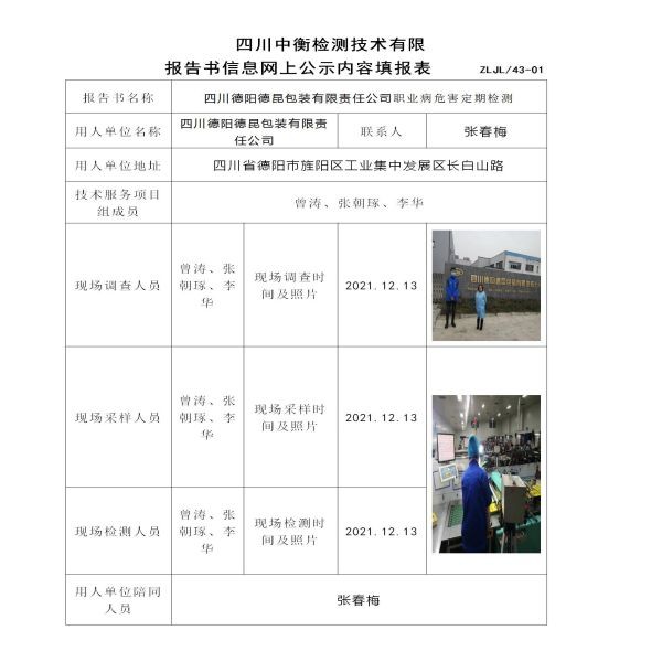 四川德陽(yáng)德昆包裝有限責(zé)任公司定期檢測(cè)