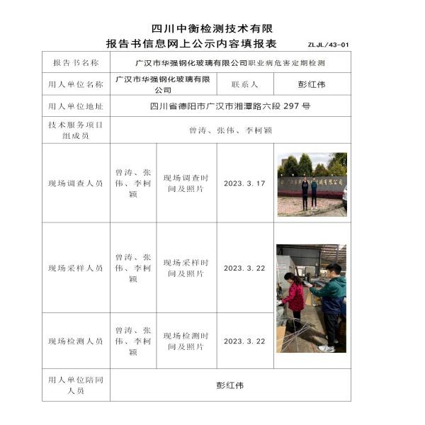 廣漢市華強鋼化玻璃有限公司定期檢測