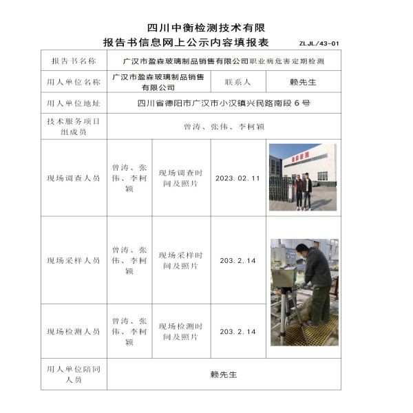 廣漢市盈森玻璃制品銷售有限公司定期檢測