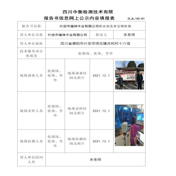 什邡市福坤木業有限公司定期檢測