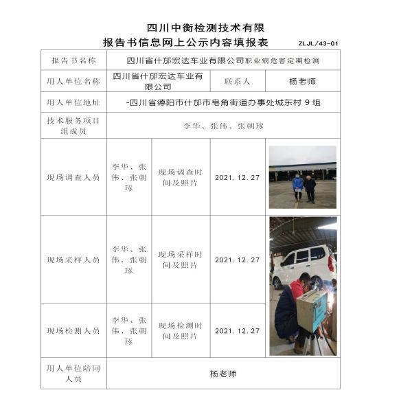 四川省什邡宏達(dá)車業(yè)有限公司定期檢測(cè)