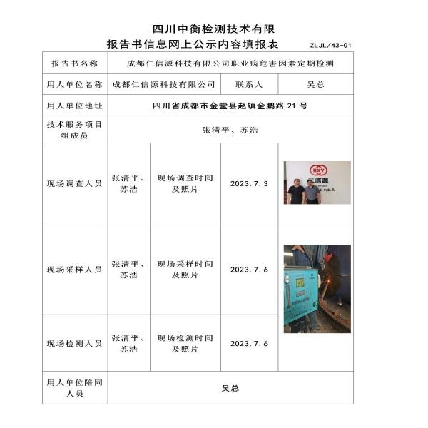 成都仁信源科技有限公司定期檢測