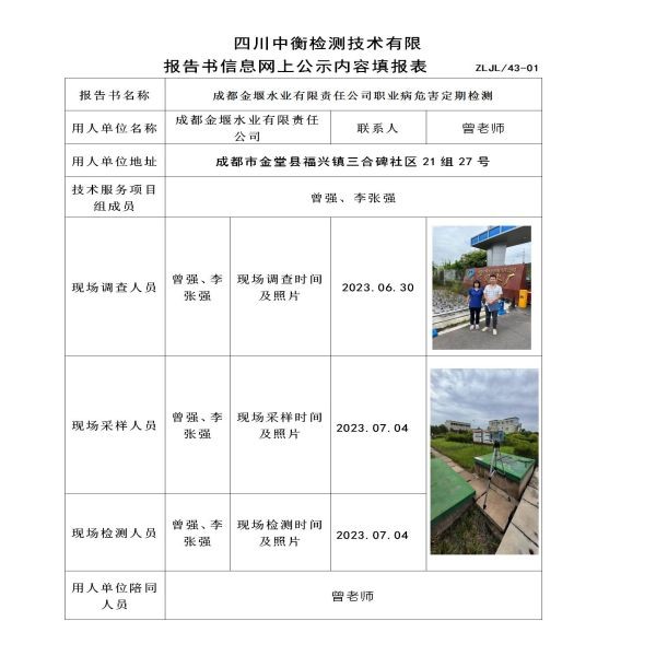 成都金堰水業有限責任公司定期檢測