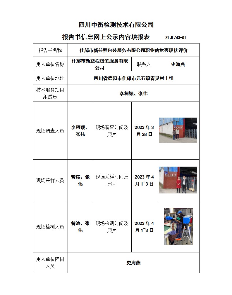 什邡市新益程包裝服務(wù)有限公司 職業(yè)病危害現(xiàn)狀評(píng)價(jià)報(bào)告