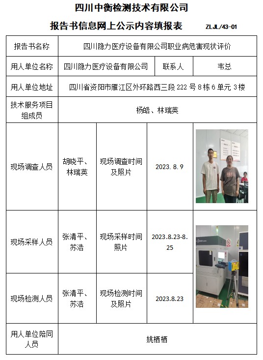 四川隱力醫(yī)療設(shè)備有限公司職業(yè)病危害現(xiàn)狀評價