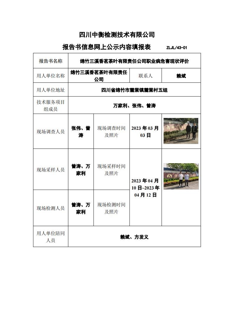 綿竹三溪香茗茶葉有限責(zé)任公司職業(yè)病危害現(xiàn)狀評(píng)價(jià)