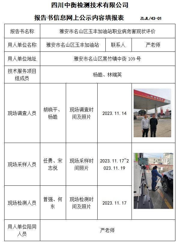 雅安市名山區(qū)玉豐加油站職業(yè)病危害現(xiàn)狀評價
