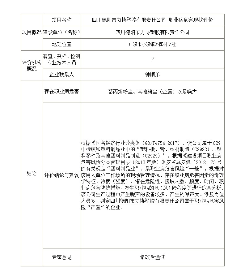 四川德陽(yáng)市力協(xié)塑膠有限責(zé)任公司 職業(yè)病危害現(xiàn)狀評(píng)價(jià)報(bào)告書(shū)